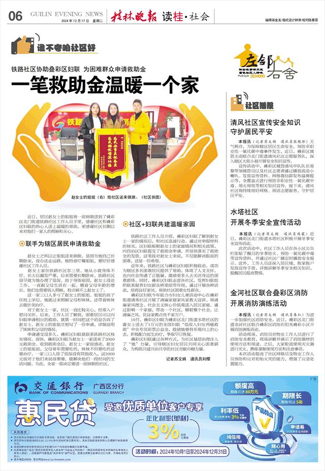 铁路社区协助叠彩区妇联 为困难群众申请救助金