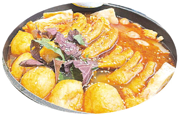 锅里的食材吃得差不多了,再把炸蛋放进去煮上几分钟,裹满汤汁一口咬下去,浓郁的味道很让人满足。