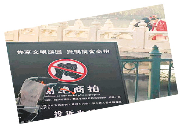 继故宫去年叫停“商拍”后,近日,北海公园、景山公园等公园纷纷设立了“谢绝商拍”的牌子。