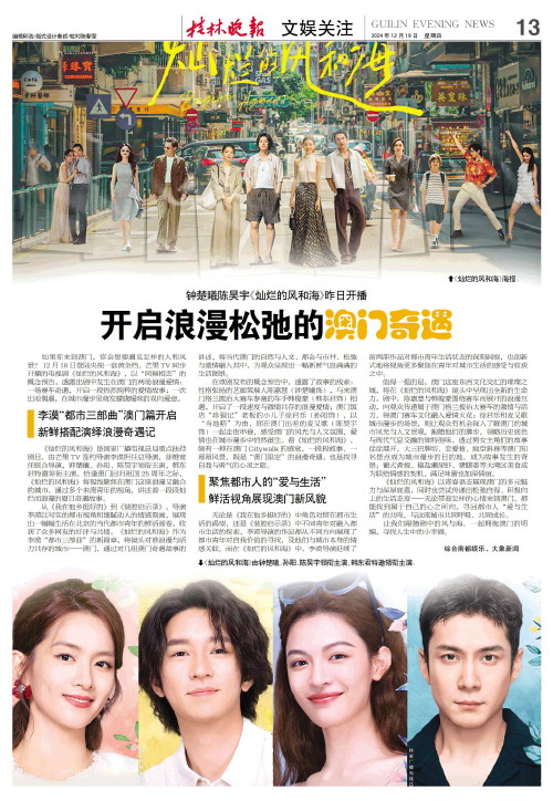 《灿烂的风和海》以青春语态展现澳门的多元魅力与深厚底蕴,同时也尝试传递出松弛自得、积极向上的生活态度——无论带着怎样的心情来到澳门,都能找到属于自己的心之所向,寻回都市人“爱与生活”的共鸣,与这座城市共同呼吸、共同成长。