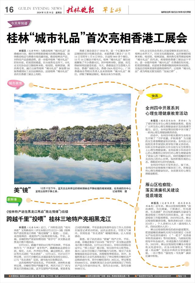 《桂林特产送往黑龙江再启“南北情缘”》后续 跨越千里“投喂” 桂林三地特产亮相黑龙江   本报讯(记者马翔)近日,广西和东北的“双向奔赴”又有新动向(详见本报12月12日2~3版《桂林特产送往黑龙江再续“南北情缘”》报道)。目前,来自桂林的一批批特产已陆续送到当地,平乐、永福、恭城的特产更是惊艳亮相“桂字号”农文旅走进黑龙江推介周活动。