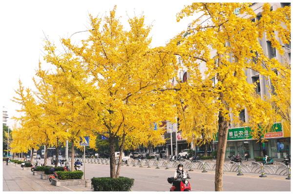 12月19日,辅星路边的银杏叶已经完全变黄,把这段路装扮成了金色大道。