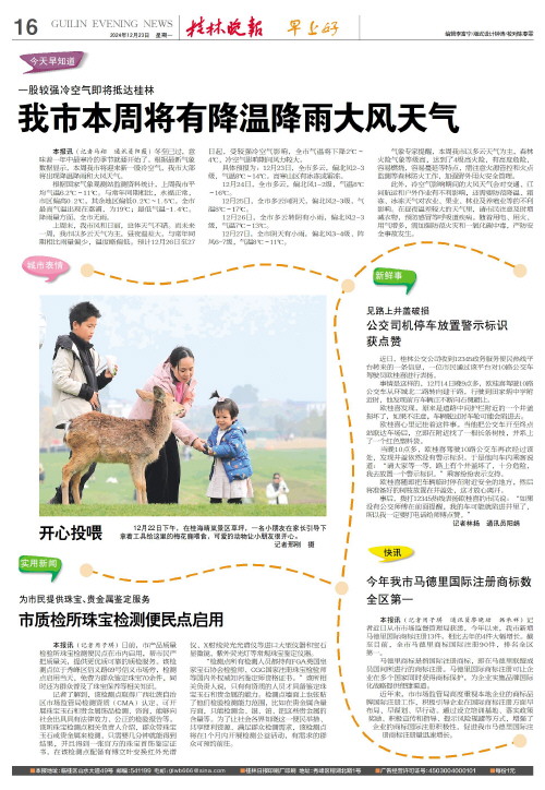 12月24日,全市多云,偏北风1-2级,气温8℃~16℃。