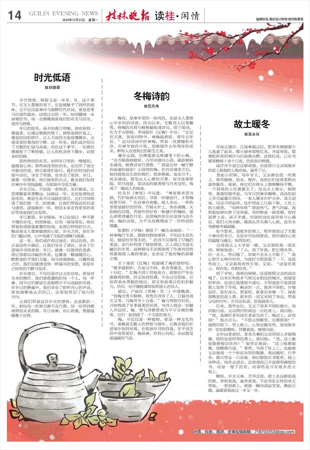 冬日絮语,岁末情深,冬日总是以一种不紧不慢的步伐,悄然降临。它用一场场雪花,将世界装扮成银装素裹的仙境,也用它特有的方式,触动着文人墨客敏感的心弦。岁末之时,站在冬的门槛回望,心中充满了无限的感慨与感激。