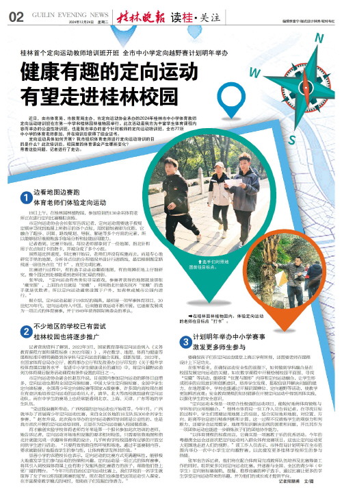 有望走进桂林校园   近日,由市体育局、市教育局主办,市定向运动协会承办的2024年桂林市中小学体育教师定向运动培训班在市第一中学和桂林园林植物园举行。此次活动是我市为丰富学生体育课程内容而举办的公益性培训班,也是我市举办的首个针对教师的定向运动培训班,全市77所中小学的体育老师参加,并在培训后获得了结业证书。