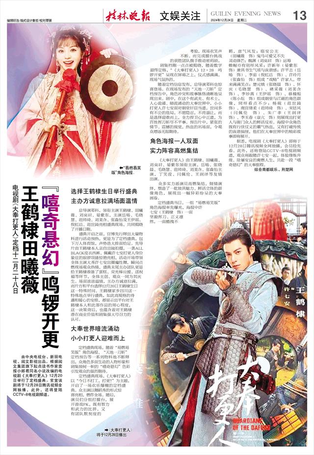 据悉,电视剧《大奉打更人》即将于12月28日腾讯视频全网独播,会员抢先看。此外,还将登陆CCTV-8电视剧频道,观众将跟随许七安一起,体验修炼升级、除暴安良的爽燃人生,共赴一段“嘻奇悬幻”的大奉旅程。