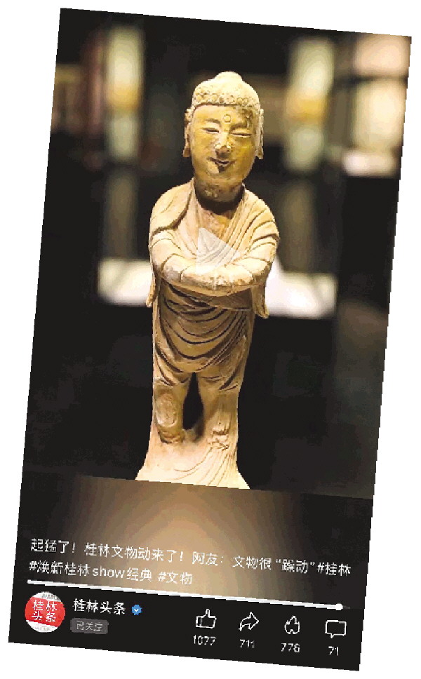 桂林博物馆宣教部副主任宾妮告诉记者,桂林博物馆文物“活”起来的视频在网上传播后,只要开馆,就有市民和游客特地来看视频中的文物,入馆参观视频内文物的观众明显增加。