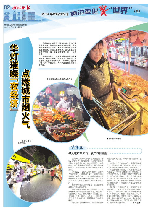 随着华灯初上,桂林这座城市显露出夜晚的热闹、好客的豪爽。这是夜幕下的桂林,也是桂林人最爱的城市烟火气。2024年,桂林的“夜经济”更加火热,人们的幸福感也不断水涨船高。