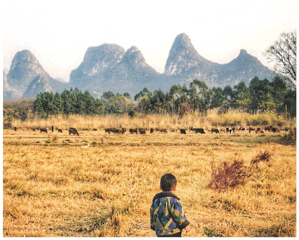 12月29日,在七星区横塘村附近的一处田野上,一群牛在这里吃草,牛群、田野和山峰组成了一幅优美的画卷。 记者滕嘉 摄