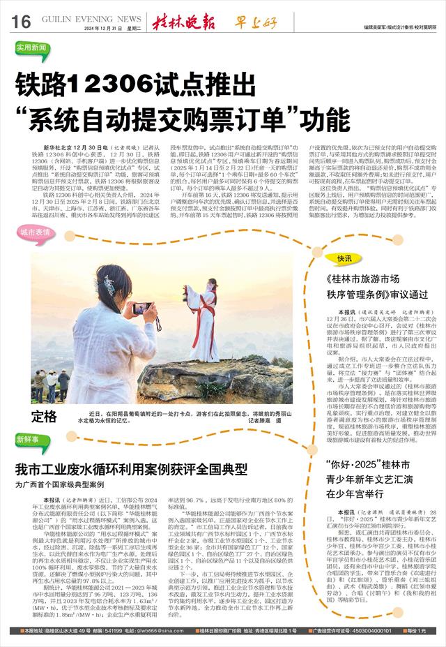 我市工业废水循环利用案例获评全国典型 为广西首个国家级典型案例   本报讯(记者阳聃甫)近日,工信部公布2024年工业废水循环利用典型案例名单,华能桂林燃气分布式能源有限责任公司(以下简称“华能桂林能源公司”)的“用水过程循环模式”案例入选,这也是广西首个国家级工业废水循环利用典型案例。