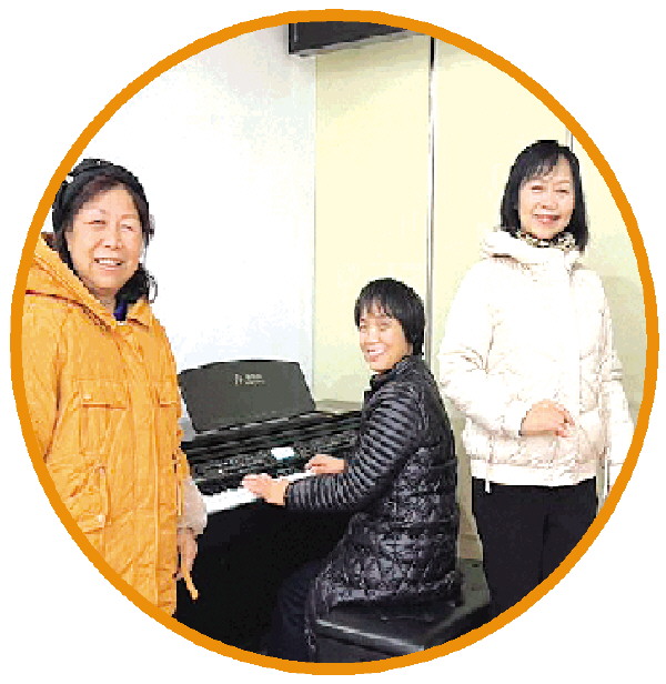 ←黄宁(左)和王素华(右)在钢琴的伴奏下,高兴地歌唱美好生活。