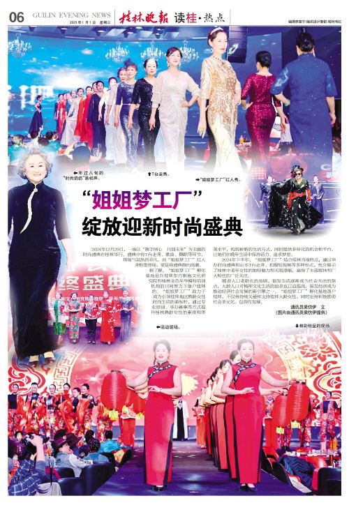 2024年下半年,“姐姐梦工厂”结合桂林当地特点,通过举办时尚盛典和山水T台走秀、拍摄短视频等多种形式,充分展示了桂林中老年女性的独特魅力和无限潜能,赢得了主流媒体和广大粉丝的广泛关注。