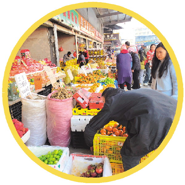 在五里店果蔬批发市场内,摊主李先生正忙着为 顾客装柚子。他告诉记者:“去年,柚子的价格为每斤3元多,现在为每斤2.8元,所以销量很不错。”