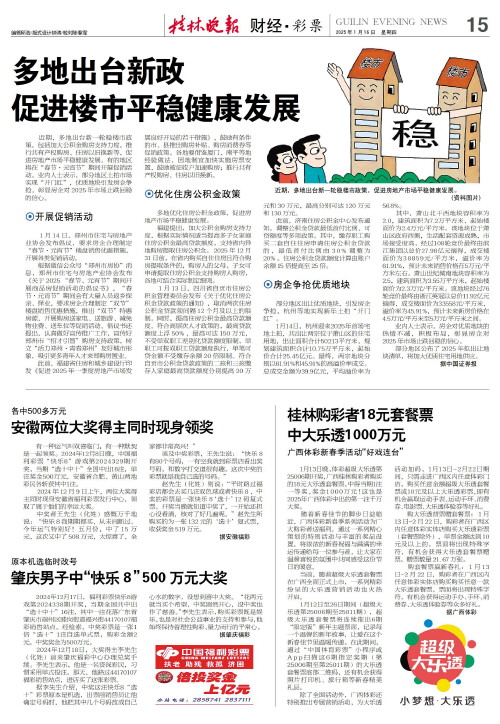 促进楼市平稳健康发展   近期,多地出台新一轮稳楼市政策,包括加大公积金购房支持力度,推行共有产权购房、住房以旧换新等,促进房地产市场平稳健康发展。有的地区将在“春节·元宵节”期间开展促销活动。业内人士表示,部分地区土拍市场实现“开门红”,优质地块引发房企争抢,彰显房企对2025年市场止跌回稳的信心。