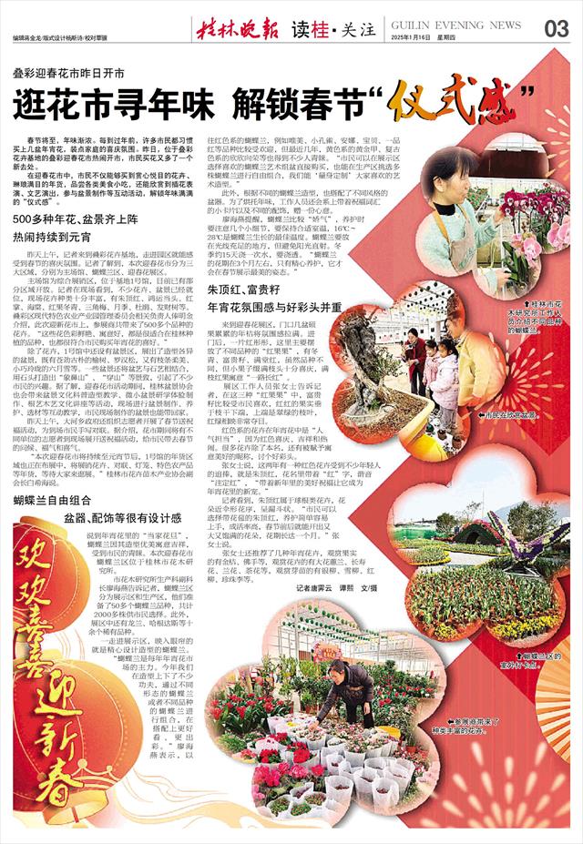 叠彩迎春花市昨日开市 逛花市寻年味 解锁春节“仪式感”   春节将至,年味渐浓。每到过年前,许多市民都习惯买上几盆年宵花,装点家庭的喜庆氛围。昨日,位于叠彩花卉基地的叠彩迎春花市热闹开市,市民买花又多了一个新去处。