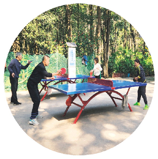 在体育场地1边上的乒乓球台边,记者还遇到了几名正在打球的市民。“球台是最近一段时间安装的,这几张球桌人气相当高。”家住翠竹路的彭先生说,乒乓球是很多人都喜欢的项目,大家常常来公园“以球会友”。