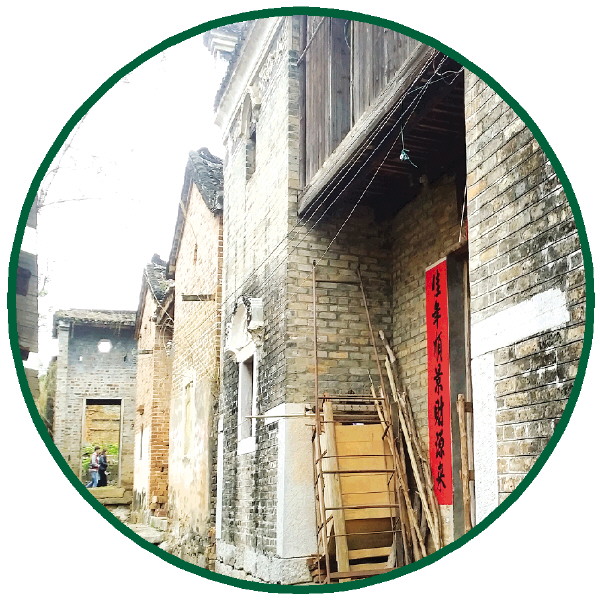 走进古村,只见村中间的20多幢明清古民居,连成一片。古民居飞檐翘角马头墙,木质花雕门窗,天井小院落,楹联诗对,古色古香。古民居各家各户前后门道路相连,出入方便,来去自如,漫步在纵横交错的青石板小道中,如进入迷宫。