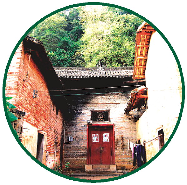 村子中央的萧氏宗祠,即“忠孝堂”最有特色。其占地面积约300平方米,三进式的老宅,老宅有前屋、天井、正厅和后院,正厅有供台和屏风,屏风左右有过道,正厅大门上挂着老楠木雕刻的牌匾油光发亮,上书:“萧氏宗祠”。