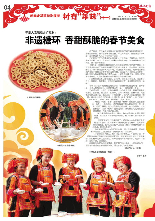 春节临近,平乐县大发瑶族乡广运村的瑶族同胞架起油锅炸糖环,准备迎接新春。糖环是市级非遗美食,不仅历史悠久,也饱含美好的寓意,是当地瑶乡人民必不可少的年货之一。