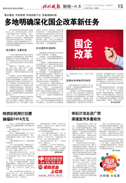 北京提出,2025年高质量完成国有企业改革深化提升行动,推进国有经济布局优化和结构调整;河北提出,2025年要高质量完成国企改革深化提升行动;天津明确,深化国资国企改革,推动产业类国企做强主业、提升核心竞争力,功能类国企提高效率、拓展市场合作,公益类国企降本增效、优化服务质量,金融类国企稳健经营、更好赋能实体经济,高质量完成国有企业改革深化提升行动……