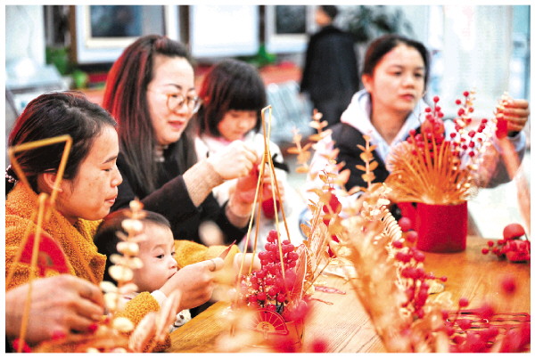 23日,解东社区办公室内热闹非凡,社区志愿者邀请辖区居民共聚一堂,共同参与制作抱抱桶活动,迎接春节的到来。记者滕嘉 摄