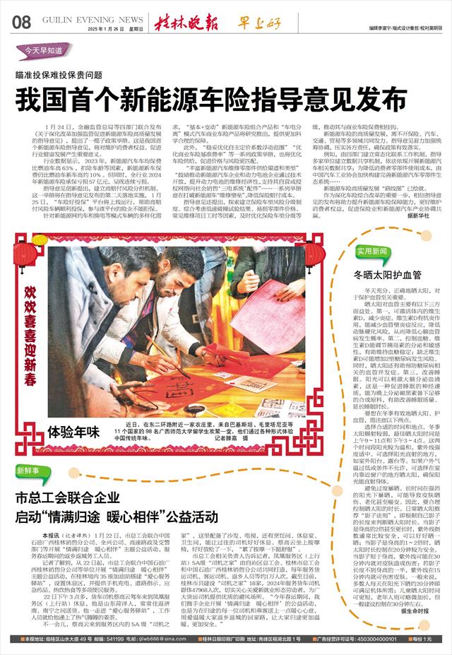 市总工会相关负责人告诉记者,凤凰服务区(上行站)5A级“司机之家”由自治区总工会、桂林市总工会和中国石油广西桂林销售分公司共同打造,每年服务货运司机、客运司机、返乡人员等约1万人次。截至目前,桂林市共建设“司机之家”18家,2024年服务货车司机群体47968人次,切实关心关爱新就业形态劳动者,为广大货运司机提供优质的避风场所。“今年春运期间,我们携手企业开展‘情满归途 暖心相伴’的公益活动,也是为在归途的每一位司机和乘客送上一点暖心心意,用爱温暖大家返乡返城的回家路,让大家归途更加温暖、更加安全。”