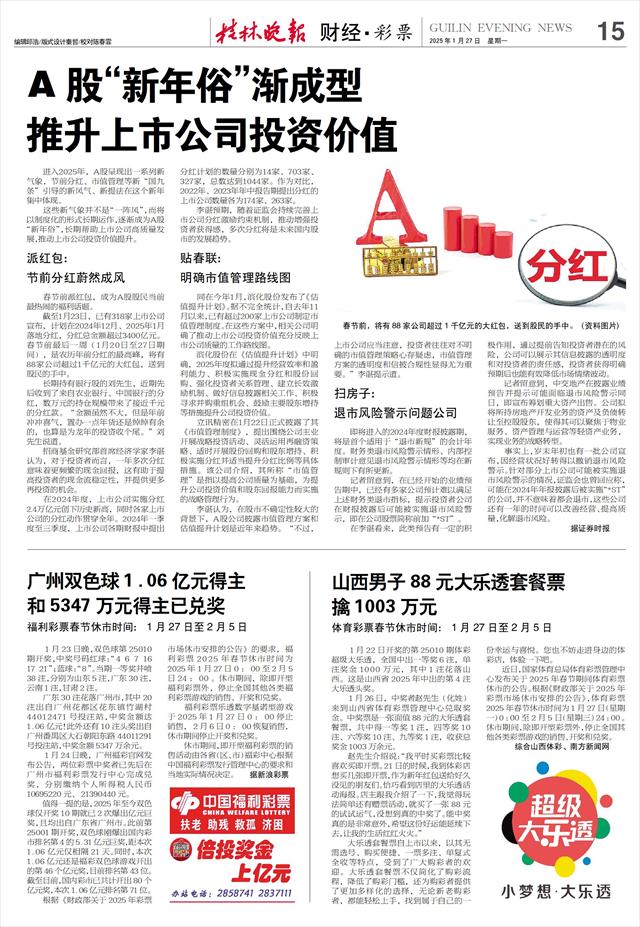 进入2025年,A股呈现出一系列新气象,节前分红、市值管理等新“国九条”引导的新风气、新提法在这个新年集中体现。