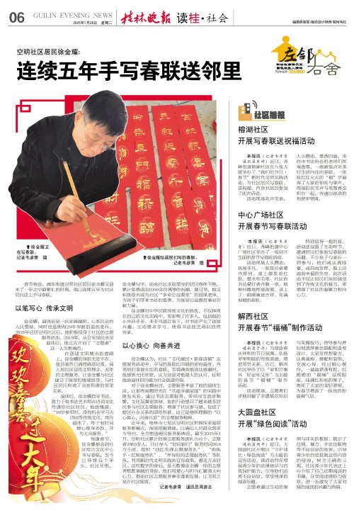 春节将近,漓东街道空明社区居民徐金耀又迎来了一年之中最繁忙的时刻,他已连续五年为社区居民送上手写春联。