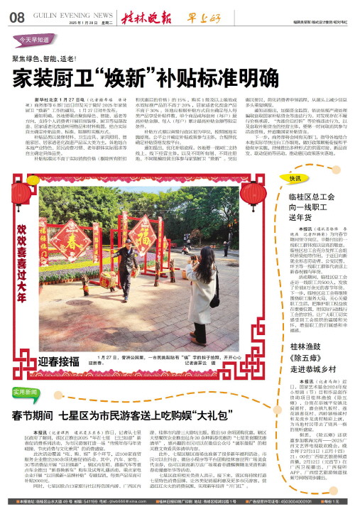 本报讯(记者谭熙 通讯员王亚东)昨日,记者从七星区政府了解到,该区正推出2025“年在七星 巳巳如意”新春促消费系列活动,为市民游客打造一场“传统年俗与年货碰撞、节庆消费与文化兼具”的消费盛宴。