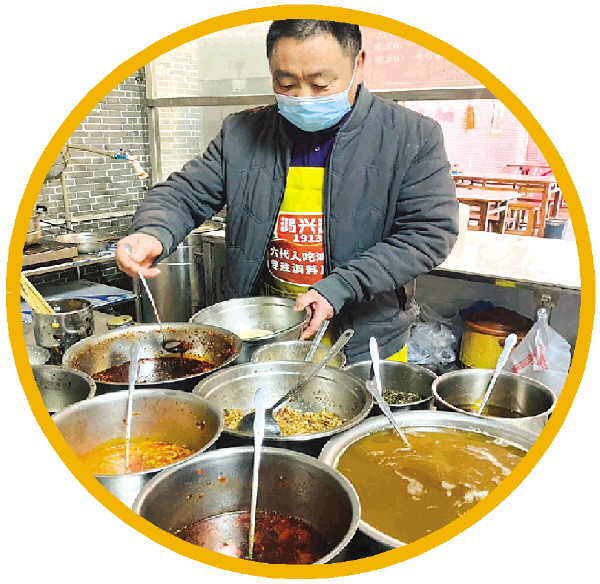 记者观察发现,在顾客点单完成后,老板都会询问食客们对面条的熟度及麻辣程度的要求。在老板的推荐下,记者点了一份正常口感的宜宾燃面。只见老板将面熟练地放入沸水中煮熟,捞起后迅速甩干水分以去除碱味,然后按照传统工艺加油加佐料进行精心拌制。