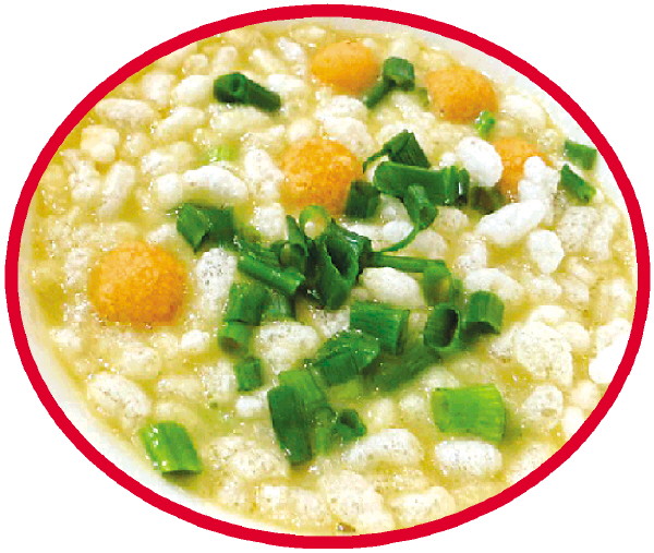 记者也先点上油茶,再慢慢看着菜单,点上几道小菜。很快,店员就端上一锅黄澄澄的油茶,以及炒米、麻旦果、香葱和花生米等配料。待油茶加热到沸腾,舀上几勺放入碗中,再加入适量的配料,以及少许食盐调味,就可以品尝了。