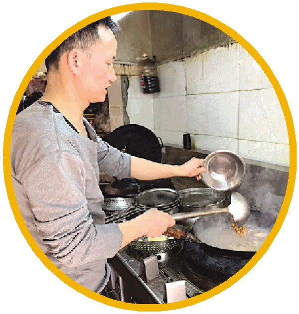 中午饭点,店员和厨师不得空闲,老板阳凤也在厨房帮忙,直到下午3点多钟才有时间休息,这时才能和大家简单吃点午饭。