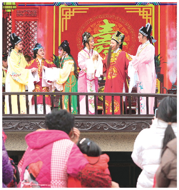春节前后,是浙江绍兴大大小小的越剧团一年中最繁忙的时节。在城市的各大景区,游客能欣赏到特色越剧片段表演;剧场里,新春越剧专场上演着观众喜闻乐见的经典剧目;各色迎春庙会上,越剧和其他曲艺成为烘托气氛的最佳文化载体;古戏台上,民间越剧爱好者自发集结,吹拉弹唱不亦乐乎;乡村文化礼堂内,送戏下乡的演员在村民好奇的打量中化好妆、穿上戏服粉墨登场。悠长的越剧唱腔传递着浓浓乡韵,营造出欢乐祥和的节日氛围。