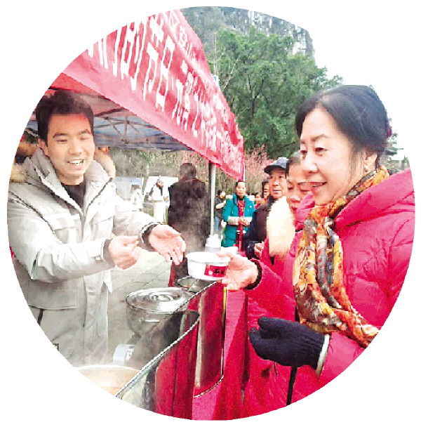 在回龙社区的闹元宵活动中,叠彩街道党工委和市审计局等单位志愿者为居民送元宵。