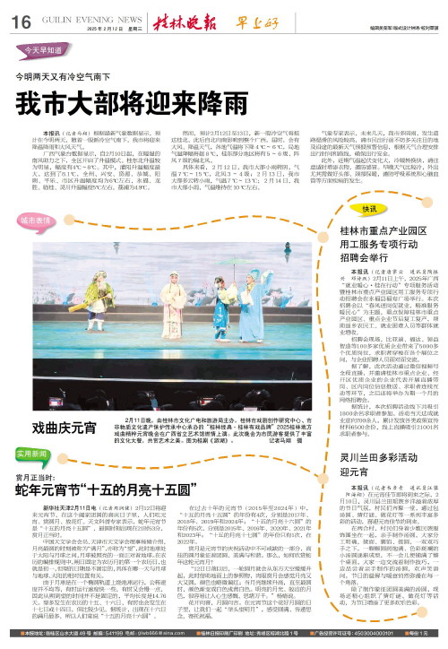 戏曲庆元宵   2月11日晚,由桂林市文化广电和旅游局主办,桂林市戏剧创作研究中心、市非物质文化遗产保护传承中心承办的“桂林经典·桂林有戏品牌”2025桂林地方戏曲精粹元宵晚会在广西省立艺术馆燃情上演。此次晚会为市民游客提供了丰富的文化大餐,共赏艺术之美。图为桂剧《游湖》。      记者马翔 摄