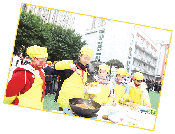 2月16日,在重庆市永川区红专小学,学生们参加“第三届生活节暨读书节”中的烹饪比赛,迎接新学期。 新华社发