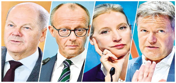 德国计划于当地时间2月23日举行新一届联邦议院选举,以确定新任总理人选。2月16日,德国社会民主党(社民党)总理候选人、现任总理朔尔茨同基督教民主联盟(基民盟)领导人默茨、绿党籍副总理哈贝克以及德国选择党领导人魏德尔举行电视辩论,围绕民众关心的移民政策、经济发展等热点议题“交锋”。