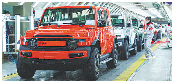 在安徽省芜湖市一家新能源车企总装车间里,工人在生产线上忙碌。 新华社发