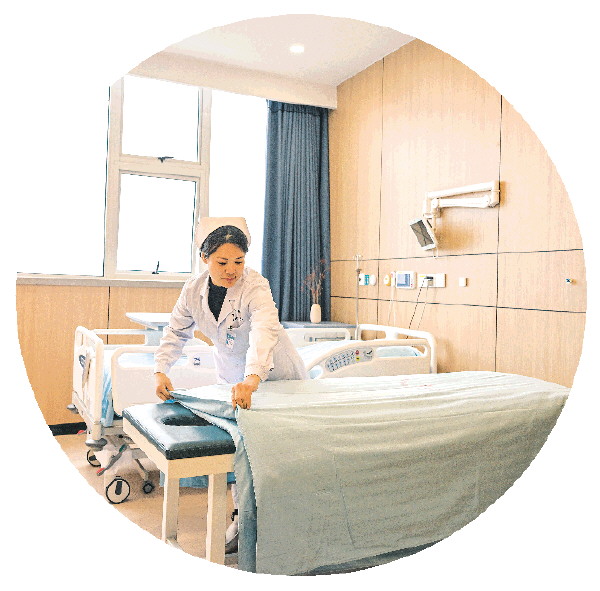 在门诊、病房和医技楼之间,天花板上有几条互相连通的轨道,通过这些轨道,能形成院内物流系统,病人取药、化验都会更加方便。在住院楼中,综合外科、泌尿外科、妇科、骨科、肿瘤血液科、全科医疗科、健康管理中心等科室已经进驻。记者在全科医疗科看到,病房明亮舒适,还配备了智能化系统。
