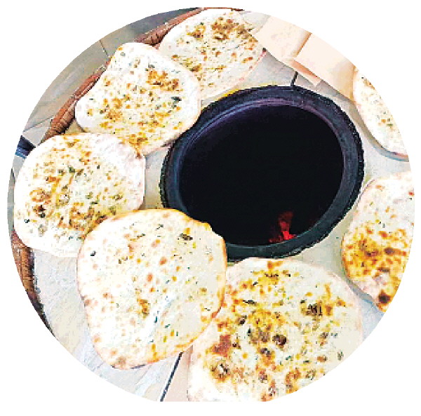 接下来是烤制面饼,只见她左手拿着面饼,右手用火钳打开火桶盖,左手往火桶里一伸,面饼便牢牢地贴在火桶里。“这个火桶的炭火是一直烧着的,温度比较高,所以动作要很快,才能不被烫着。”万成娟告诉记者,要让面饼牢牢粘在火桶壁上,就要在面饼表皮抹一点水,增加黏性。高温炉膛内,饼皮受热迅速鼓起。烘烤3分钟后,面饼边缘微焦时,就可以用铁钳夹出。