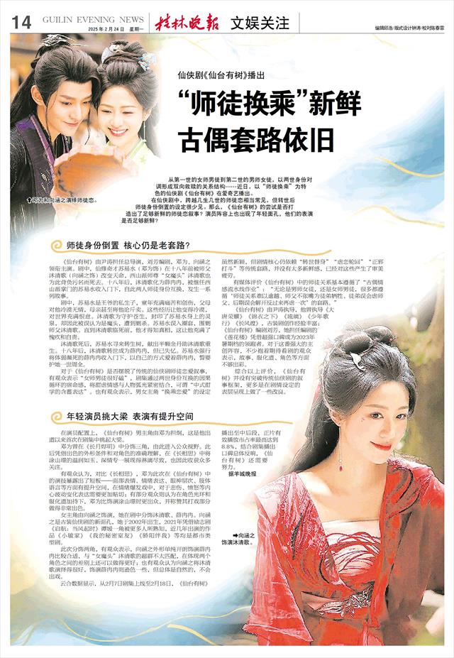 古偶套路依旧   从第一世的女师男徒到第二世的男师女徒,以两世身份对调形成双向救赎的关系结构……近日,以“师徒换乘”为特色的仙侠剧《仙台有树》在爱奇艺播出。