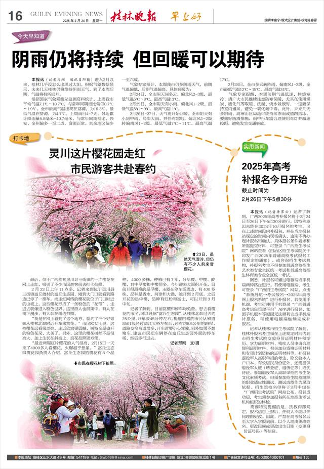 市民游客共赴春约   最近,位于广西桂林灵川县三街镇的一片樱花在网上走红,吸引了不少市民游客前去打卡拍照。