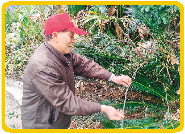 叶国芳处理路边容易扎到人的树枝,他说这都是“顺手的小事”。记者苏文娟 摄
