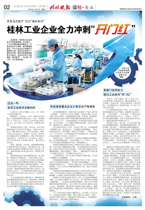 开足马力生产 大力“招兵买马” 桂林工业企业全力冲刺“开门红”   近段时间,桂林各大企业的生产车间机器轰鸣,生产线上,工人们忙碌的身影穿梭其中。记者在走访中了解到,春节假期结束后,不少工业企业订单量及产量持续上涨,部分企业还投入了新的生产线。面对订单增多带来的人力缺口,企业也开启了大规模的“招兵买马”,为冲刺“开门红”注入强劲动能。