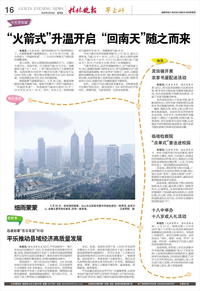 本报讯(记者唐霁云 通讯员陈友娟)2月27日,桂林市第十八中学2025届十八岁成人礼活动在该校高中部横塘校区体育馆大礼堂举行,学校高三年级师生、家长代表参与活动。本次活动以“成长、感恩、奋进、担当”为主题,旨在进一步激发学子们进入成年的使命感和责任感。