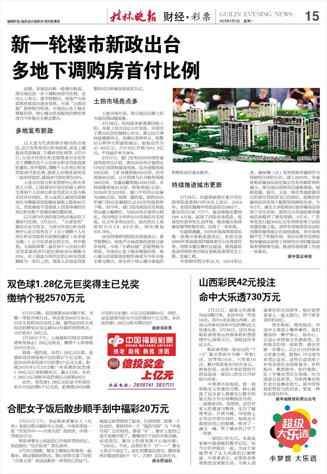 多地下调购房首付比例   近期,多地出台新一轮楼市新政,部分地区进一步下调购房首付比例。业内人士表示,春节假期后,房地产市场政策托底效应逐步显现,市场“止跌回稳”趋势较为明显,市场信心处于稳步修复阶段。核心城市优质板块的韧性将成为今年楼市主要支撑点。