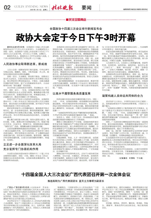 陈刚指出,十四届全国人大三次会议是在“十四五”规划收官之年和进一步全面深化改革的重要一年召开的重要会议。开好这次大会,意义十分重大,对各位代表依法履职尽责提出了更高要求,也是对大家政治判断力、政治领悟力、政治执行力的一次政治检验。广西代表团全体代表要提高政治站位,统一思想认识,始终在思想上政治上行动上同以习近平同志为核心的党中央保持高度一致,以饱满的政治热情和旗帜鲜明讲政治的实际行动,展示好广西人大代表乃至5700多万八桂儿女坚定拥护“两个确立”、坚决做到“两个维护”的政治自觉。要强化责任担当,依法履职尽责,抓好会前学习,认真做好审议,提好议案建议,紧扣贯彻落实习近平总书记关于广西工作论述的重要要求,紧盯国家政策指向、着眼广西发展所需,围绕“一区两地一园一通道”建设,聚焦人工智能创新合作、创建国家级创新平台、平陆运河建设等重大事项,多建睿智之言、多献务实之策。要严明会风会纪,展现良好形象,确保大会顺利召开。