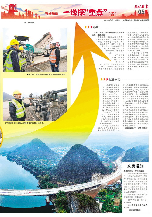 上周,记者来到兴安至阳朔公路延长线工程施工现场,机器的轰鸣声交织成一曲激昂奋进的乐章。