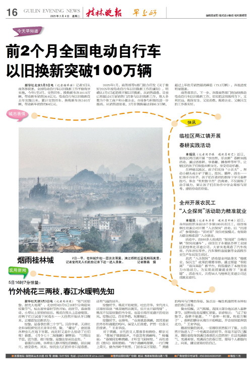 以旧换新突破100万辆   新华社北京3月3日电(记者谢希瑶)记者3日从商务部获悉,全国电动自行车以旧换新工作平稳有序实施,今年1至2月,交售旧车、换购新车各101.9万辆,带动新车销售26.6亿元。电动自行车以旧换新自去年实施以来,累计交售旧车、换购新车各240万辆,带动新车销售约64亿元。