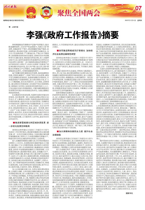李强在报告中指出,一年来,我们深入学习贯彻习近平新时代中国特色社会主义思想,坚定维护以习近平同志为核心的党中央权威和集中统一领导,把党的领导贯穿政府工作各方面全过程,全面贯彻落实党的二十大和二十届二中、三中全会精神,按照党中央决策部署,主要做了以下工作:一是因时因势加强和创新宏观调控,推动经济回升向好;二是坚定不移全面深化改革扩大开放,增强发展内生动力;三是大力推动创新驱动发展,促进产业结构优化升级;四是统筹城乡区域协调发展,优化经济布局;五是积极发展社会事业,增进民生福祉;六是持续加强生态环境保护,提升绿色低碳发展水平;七是加强政府建设和治理创新,保持社会和谐稳定。
